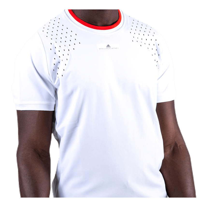 Pidä pistetilannetta silmällä tässä superfunktionaalisessa topissa. Kevyt ja innovatiivinen rakenne antavat paremman liikkumisvapauden voimakkaisiin syöttöihin ja vahvoihin palautuksiin. Laserleikatut lävistykset auttavat ilman kiertämistä, kun peli alkaa käydä kuumana. Nähty tenniskentällä Dominic Thiemin, Lucas Pouillen ja Stefanos Tsitsipasin käyttämä maailman tunnetuimman tennisturnauksen aikana. Tennis by Stella Tenniskokoelma adidas by Stella McCartney vie voimakkaan pelin ja hienostuneen tyylin kentille Yhteistyötä Stella McCartneyn kanssa McCartney on tehnyt yhteistyötä Adidaksen kanssa vuodesta 2005 innovatiivisten ja funktionaalisten treenivaatteiden luomiseksi