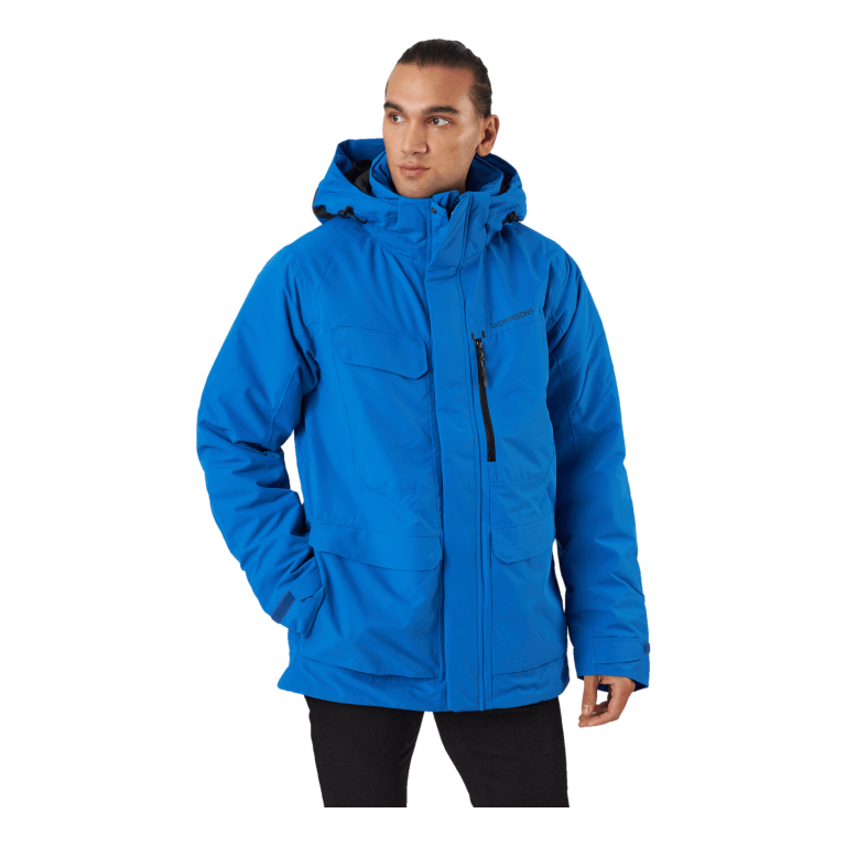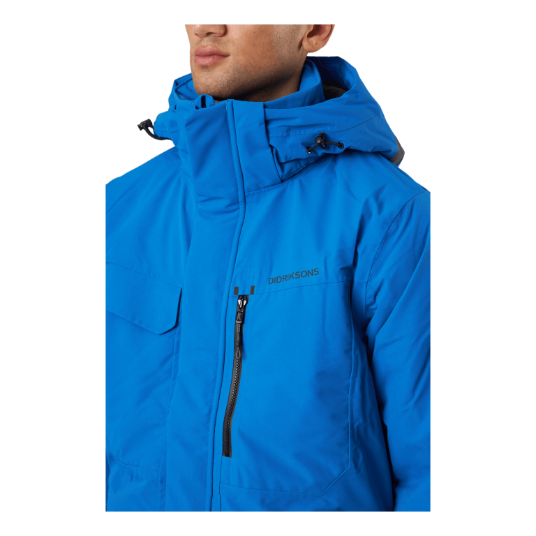 Didriksonsin nimi ja logo heijastava painatus rinnassa ja toisessa olkapäässä selässä. Heijastava vetoketju. Edessä on neljä taskua, joista kahteen pääsee käsiksi kahdelta sivulta. Yhdessä taskussa on vedenpitävä vetoketju, kun taas toisissa on nepparit. Vetoketjullinen sisätasku ja kaksi verkkotaskua. Joustava täyspitkä kaksisuuntainen vetoketju edessä suojaavalla myrskyläpällä. Takkia voidaan säätää kiristysnyörillä helmassa ja myös hihansuissa säädettävät. Hihoissa on joustavat hihansuut peukalonrei’illä. Eristys on valmistettu 100 % kierrätyskuiduista ja vuori on värjätty Solution Dye -värjäystekniikalla, joka säästää jopa 80 % vettä verrattuna perinteisesti värjättyyn polyesteri/polyamidikankaaseen. Mustan, tumman yösinisen ja syvän vihreän värisävyissä kuorikangas on myös liuosvärjättyä. PFC-vapaa vettä hylkivä viimeistely.