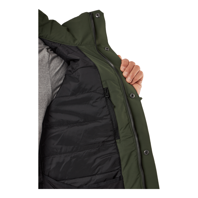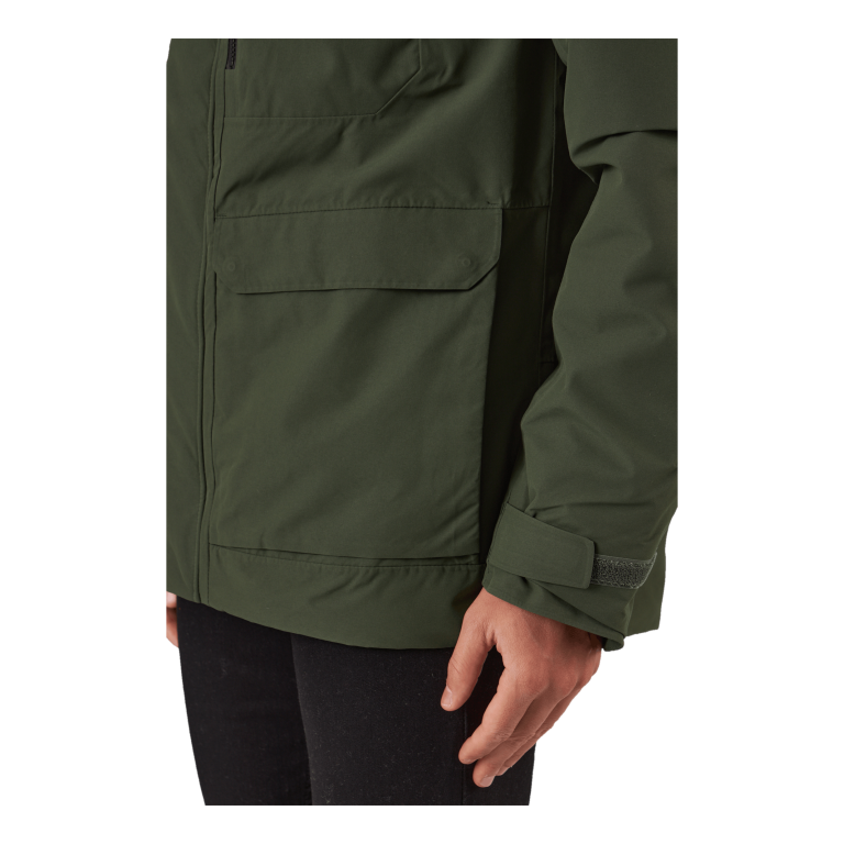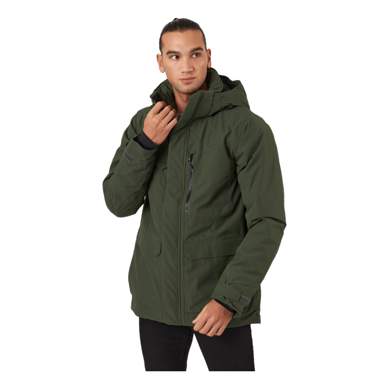 Didriksonsin nimi ja logo heijastava painatus rinnassa ja toisessa olkapäässä selässä. Heijastava vetoketju. Edessä on neljä taskua, joista kahteen pääsee käsiksi kahdelta sivulta. Yhdessä taskussa on vedenpitävä vetoketju, kun taas toisissa on nepparit. Vetoketjullinen sisätasku ja kaksi verkkotaskua. Joustava täyspitkä kaksisuuntainen vetoketju edessä suojaavalla myrskyläpällä. Takkia voidaan säätää kiristysnyörillä helmassa ja myös hihansuissa säädettävät. Hihoissa on joustavat hihansuut peukalonrei’illä. Eristys on valmistettu 100 % kierrätyskuiduista ja vuori on värjätty Solution Dye -värjäystekniikalla, joka säästää jopa 80 % vettä verrattuna perinteisesti värjättyyn polyesteri/polyamidikankaaseen. Mustan, tumman yösinisen ja syvän vihreän värisävyissä kuorikangas on myös liuosvärjättyä. PFC-vapaa vettä hylkivä viimeistely.