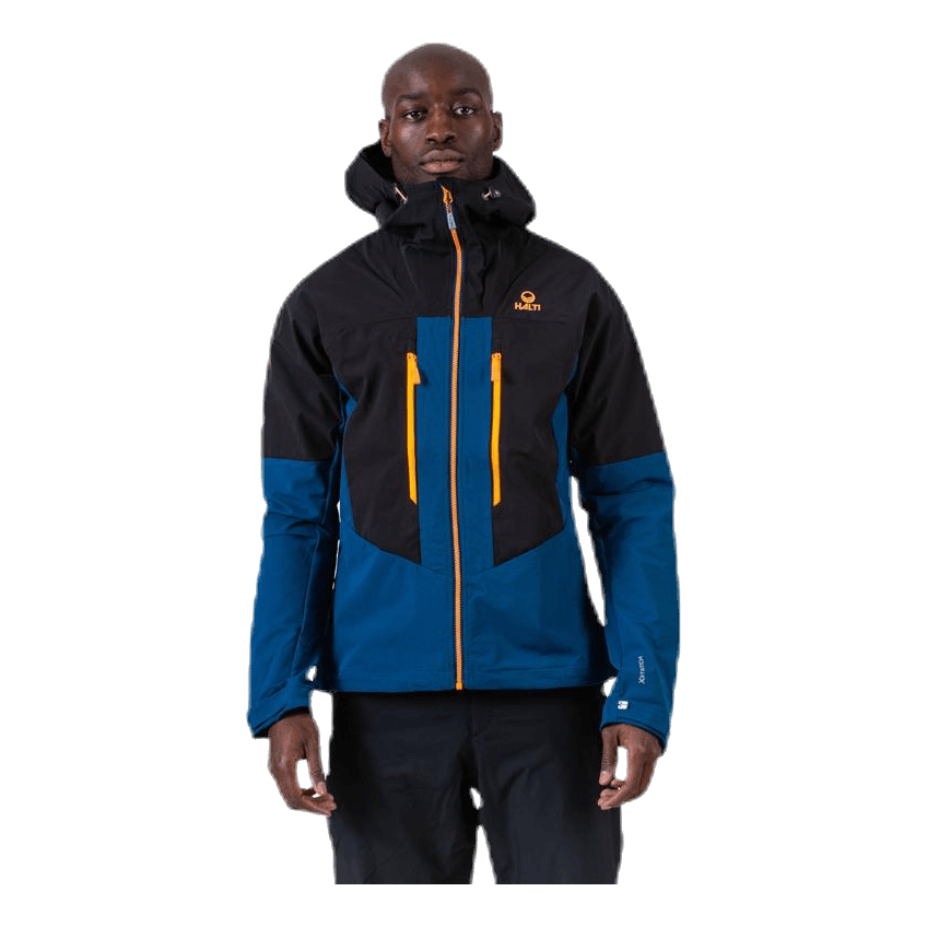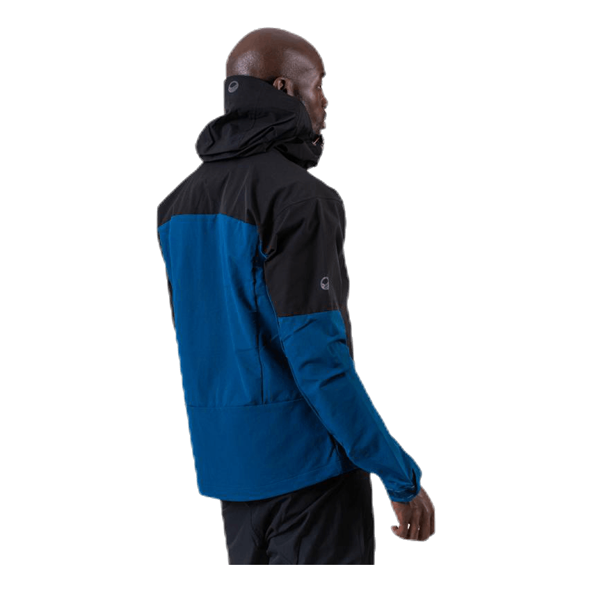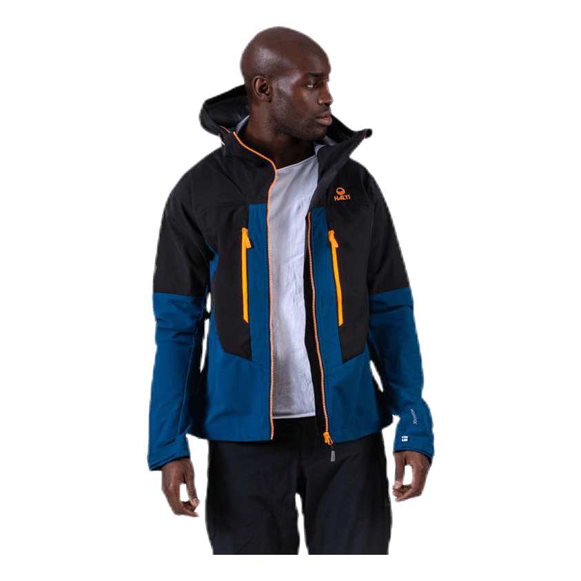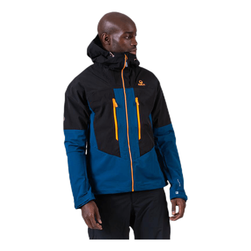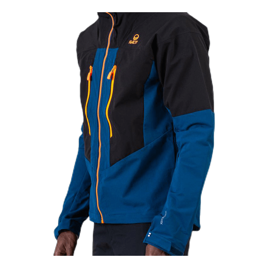 Miesten hybridiulkoilutakki. Huppu ja olkapäät ovat vesitiivistä X-Strech-materiaalia ja sisäpuolen materiaali on harjattu, mikä tarjoaa mukavuutta viileämmässä säässä. Erinomainen takki, joka hengittää ja suojaa kevyeltä sateelta takin ulkokankaan ansiosta. Haltin ECO-tuote, sillä molemmat materiaalit ovat bluesign-sertifioituja ja valmistettu kierrätysmateriaaleista.