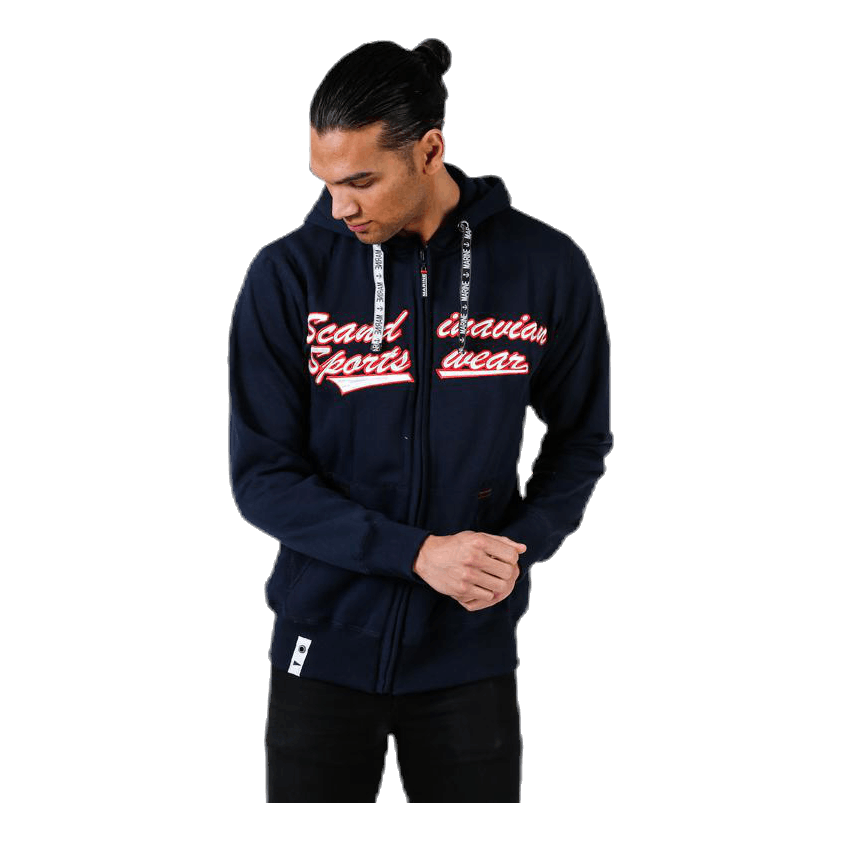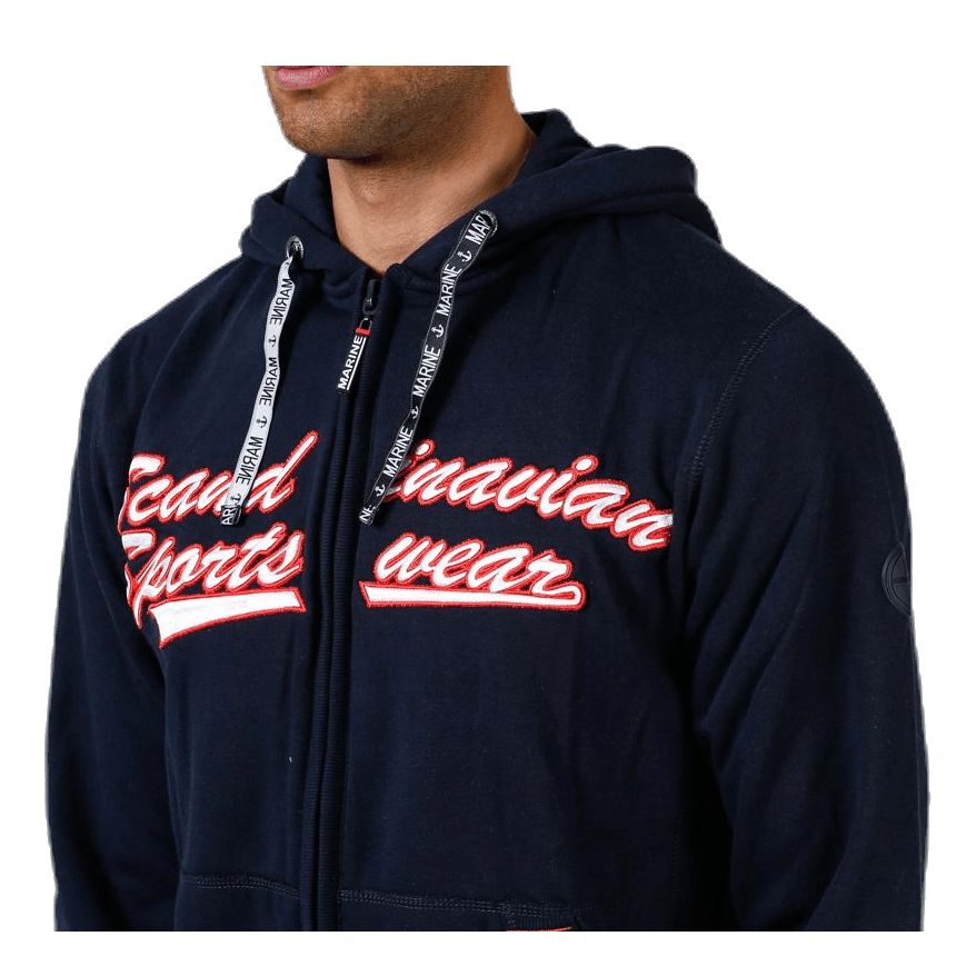 Tyylikäs merellinen huppari. Mallissa on pitkä vetoketju, säädettävä huppu, tyylikäs kontrasti hupussa ja urheilullinen printti rinnassa.