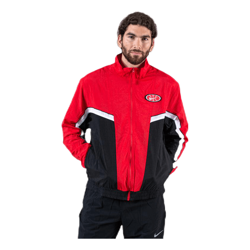 Nike Throwback Basketball Jacket on päällinen kahdesta osasta, jotka ovat osa klassista verryttelypukua, joka symboloi koripallokentällä käytettävää tyyliä. Takki on valmistettu kevyestä kudotusta kankaasta, jonka muotoilu ja yksityiskohdat ovat saaneet vaikutteita perinteisestä tyylistä.