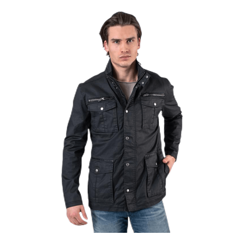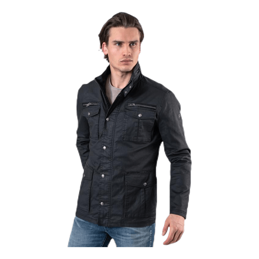 Vahattu takki pehmeää puuvillaa, jossa sekä vetoketju että napit edessä. Neljä etutaskua taskukannuksella ja kaksi vetoketjullista taskua. Kaksi sisätaskua. Normaali istuvuus.