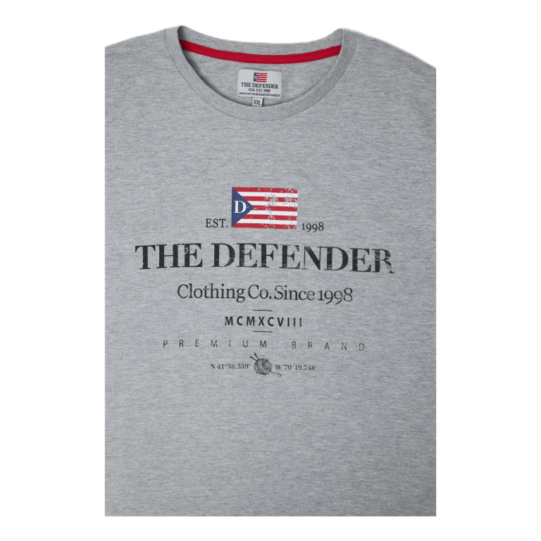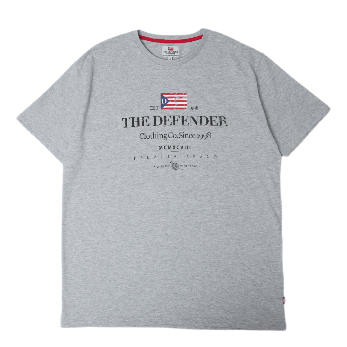 Harmaameleerattu, laadukas t-paita jossa on paljon hienoja yksityiskohtia. Klassinen t-paita on valmistettu puuvillasta, siinä on pyöreä kaulus ja kontrastinvärinen nauha. Printti edessä. The Defender label niskassa ja sivulla.