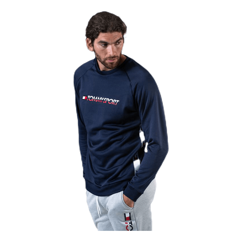 Tommy Hilfiger Sport Knit Crew Sweat Logo Tape Blue