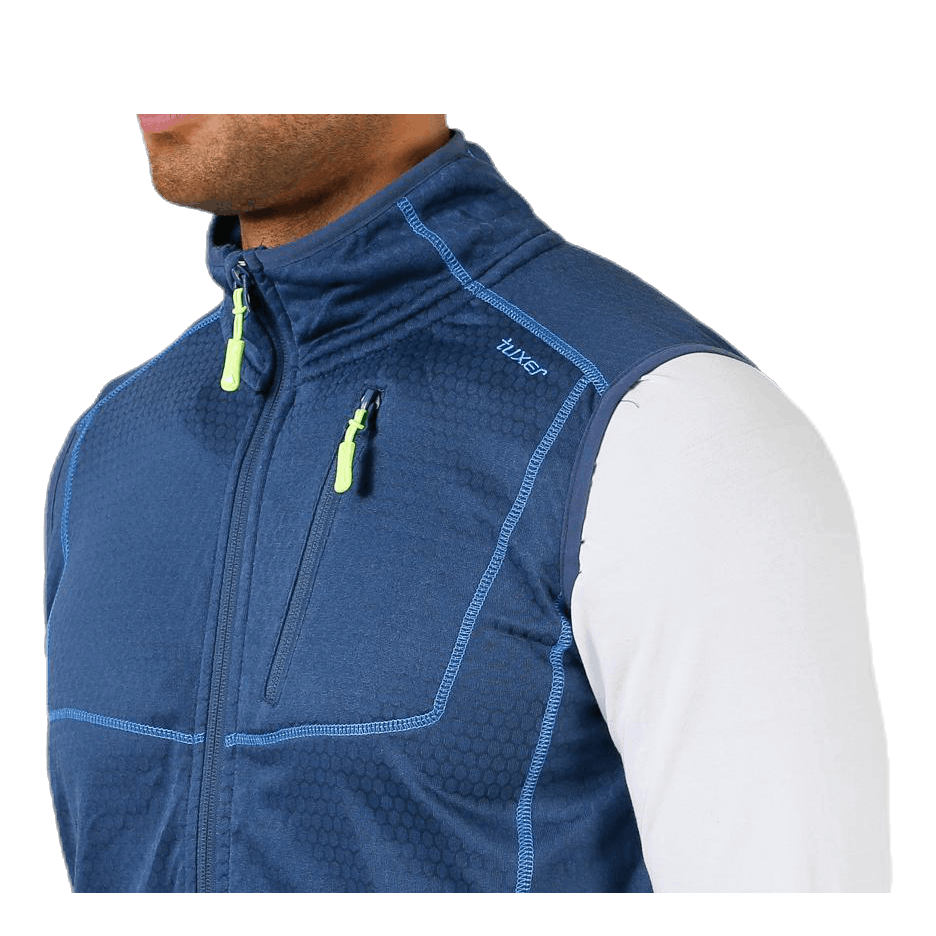 Ohut fleeceliivi harjatulla sisäpuolella, joka kätevän rakenteensa ansiosta myös hengittää jonkin verran. Liivissä on nyppääntymättömäksi käsitely pinta ja kolme vetoketjullista taskua. Materiaali on hieman joustavaa, mikä auttaa sitä istumaan hyvin. Täydellinen päällimmäisenä vaatteena syksyllä tai välikerroksena talvella. Kaulus suojaa säältä ja tuulelta. Tuloksena on vaate, josta on paljon hyötyä, eikä se vie juurikaan paljon tilaa.